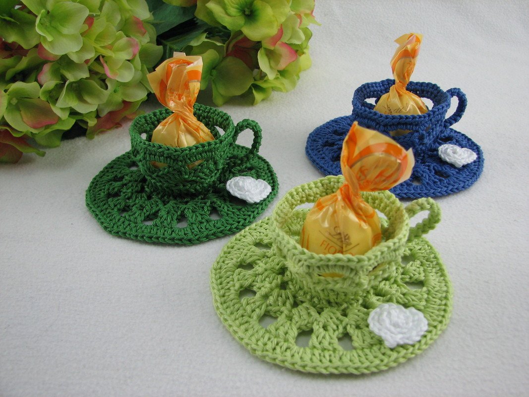 Diese kleine Espresso-Tasse ist schnell gehäkelt und mit einer "süßen Füllung" das ideale Dankeschön für eine Einladung.
