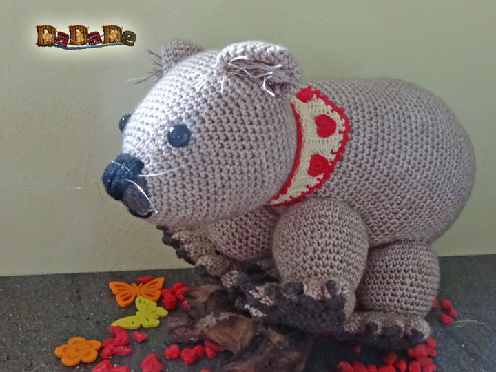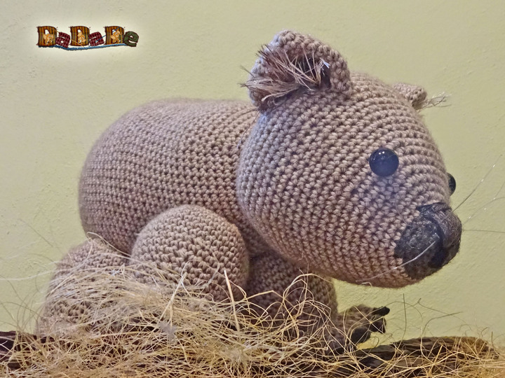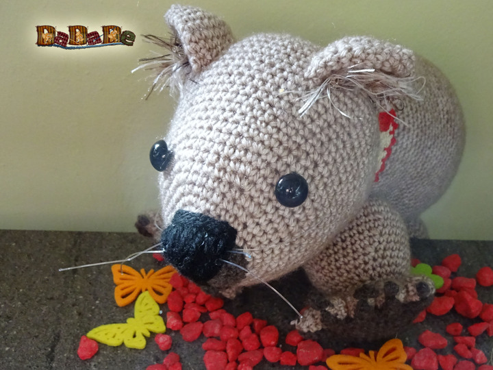 Der Wombat ist mit weicher, melierter Wolle gehäkelt
