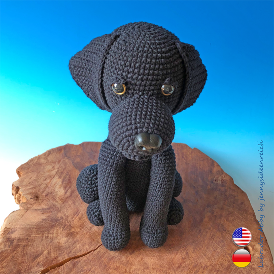 Häkelanleitung Labrador Abby, Anleitung um einen sitzenden Hund zu häkeln, von jennysideenreich