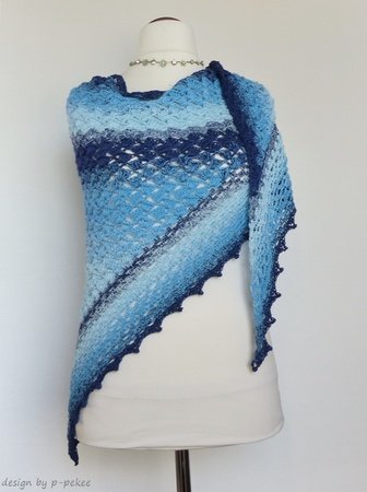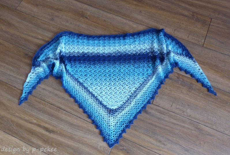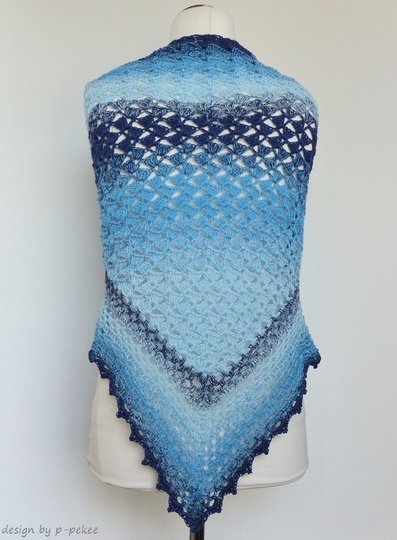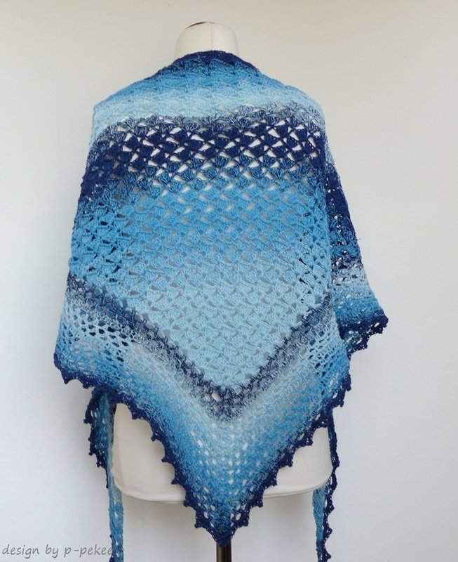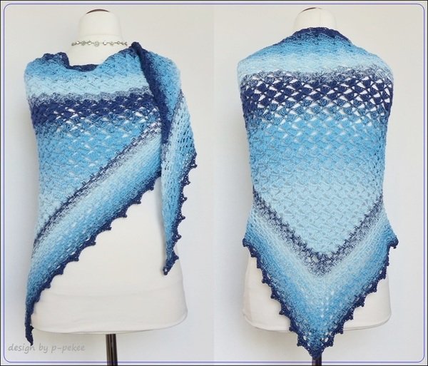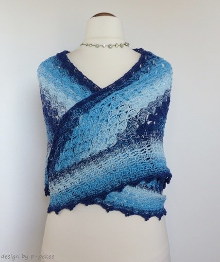 Das Häkeltuch kann man sehr vielseitig verwenden. Wärmend als Schulterdurch oder auch als Schal. Das modische Blau trägt sich sehr gut zur Jeans. Unifarben passt das Tuch zu fasst jeder Gelegenheit.