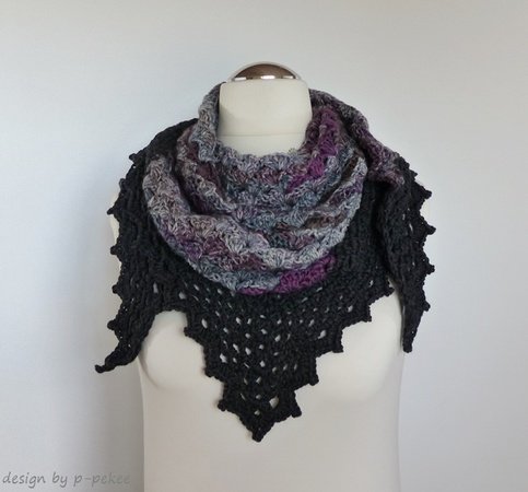 "Aylin" ist ein sehr schönes Häkeltuch / Stola, das raffiniert gehäkelt wurde. Aufgrund der unterschiedlichen Häkelrichtungen ist das Tuch einzigartig. Das Dreieckstuch kann in der Größe individuell selbst gestaltet werden, ist leicht zu häkeln und schaut gut aus. Das Muster wiederholt sich und ist leicht zu merken!