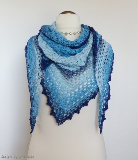 Das Dreieckstuch kann mit fasst jedem Garn (Nadelstärke 2,5 - 4) gehäkelt werden. Es eignet sich somit Farbverlaufsgarne (Bobbel), dünne Merino- oder Mikrofasergarne, Baumwoll- oder Baumwoll-Mischgarn. Für die abgebildeten Dreieckstücher sind Wollangaben in der Anleitung enthalten.