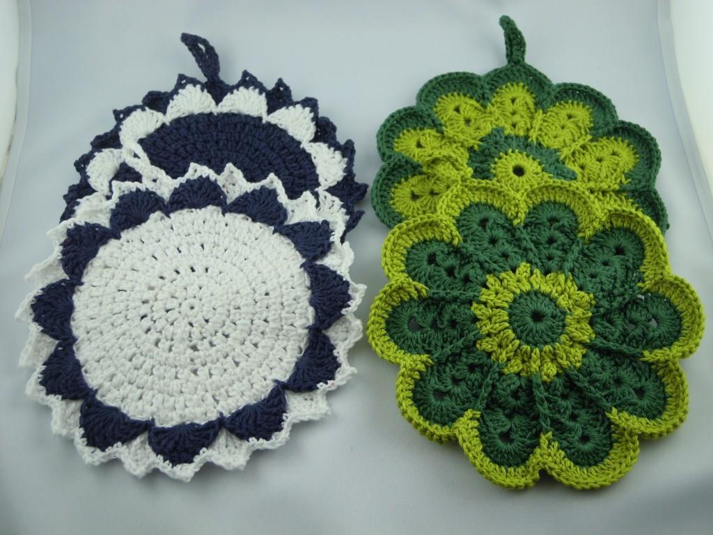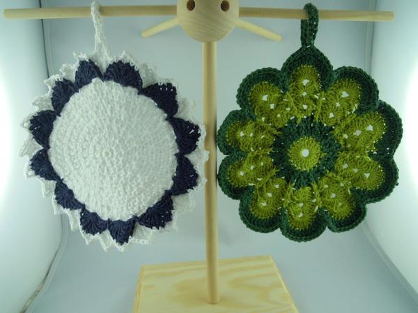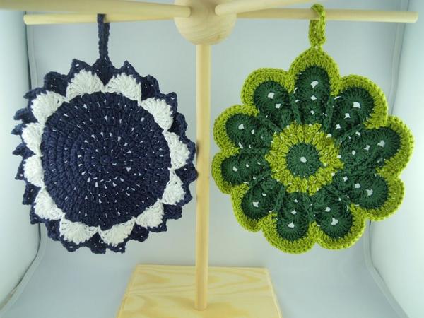 In dieser Häkelanleitung beschreibe ich detailliert mit vielen Bildern den Weg bis zu den fertigen Topflappen.