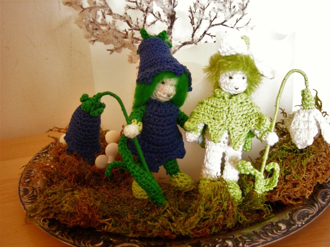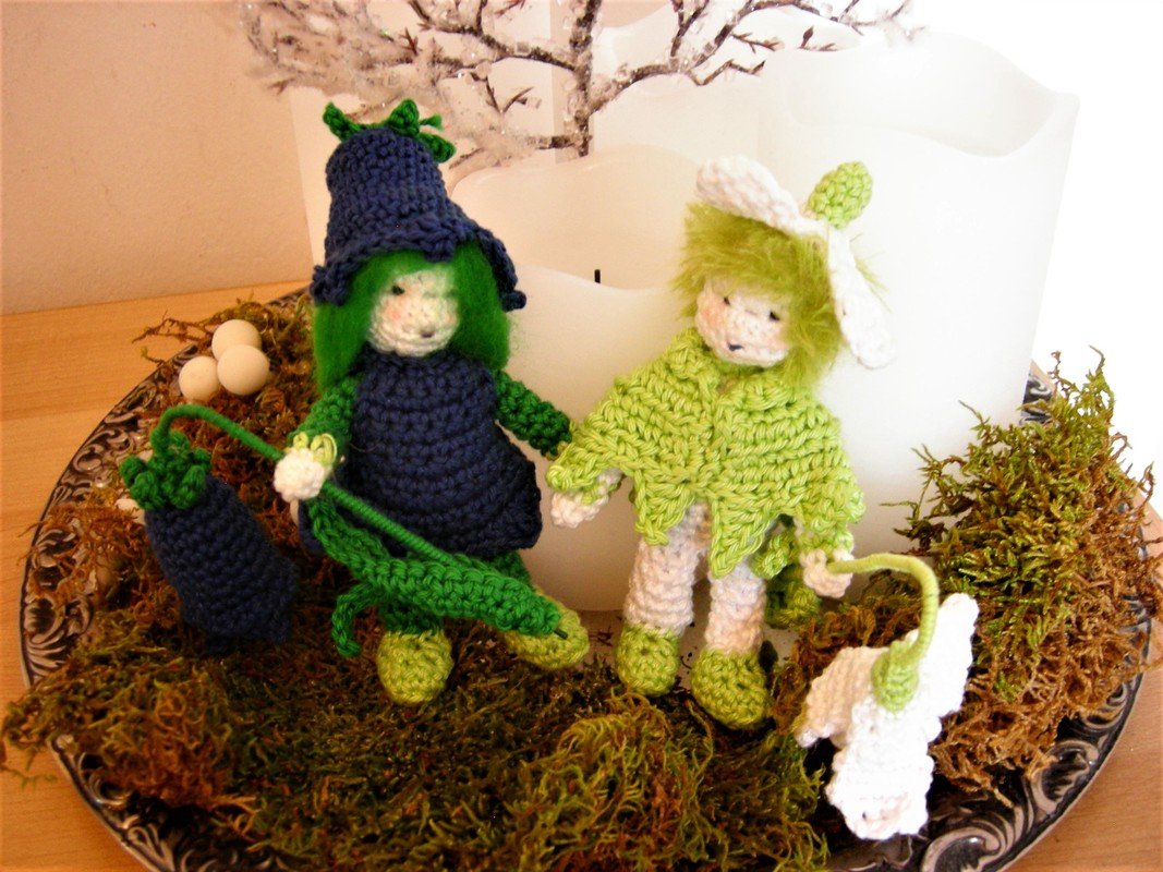 Die beiden Püppchen haben bewegliche Arme und Beine, so dass du sie in beliebiger Position aufstellen kannst. Sie sind eine hübsche Frühlingsdekoration für den Jahreszeitentisch. Aber auch auf dem Frühstückstisch machen sie sich gut.