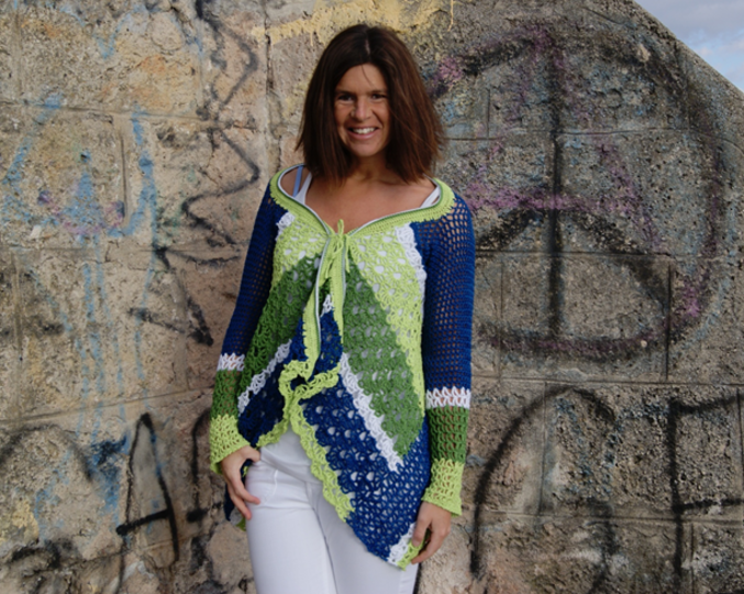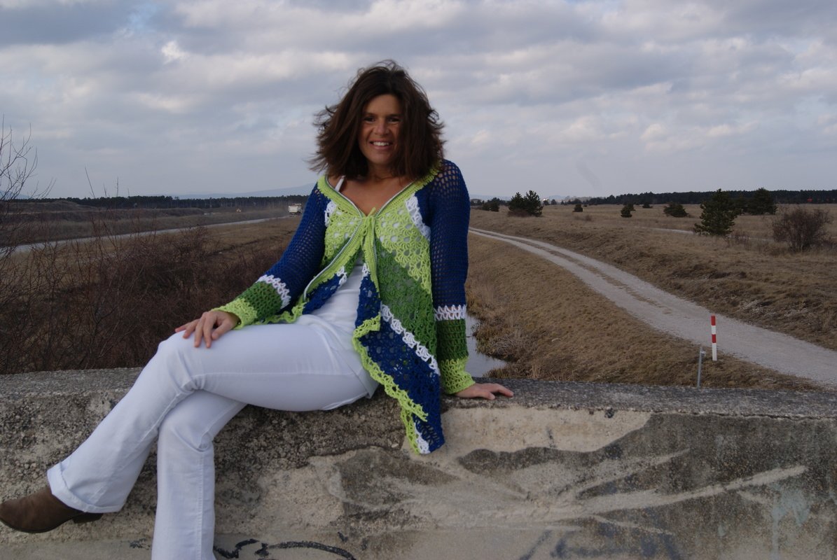 Meine Jacke ist schon fertig. Sie ist wirklich schnell gehäkelt, dank der prima Anleitung, ich finde sie auch in diesen Farben schön.