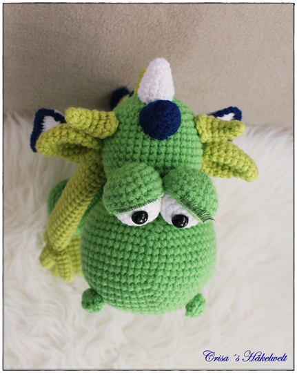 ♥ Mit dem angegebenen Material wird der Drache etwa 36 cm groß. Meiner wiegt stolze 430g