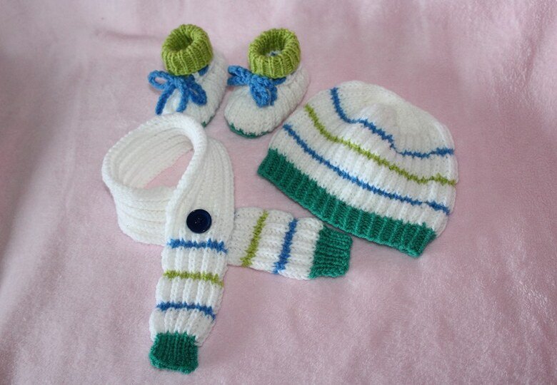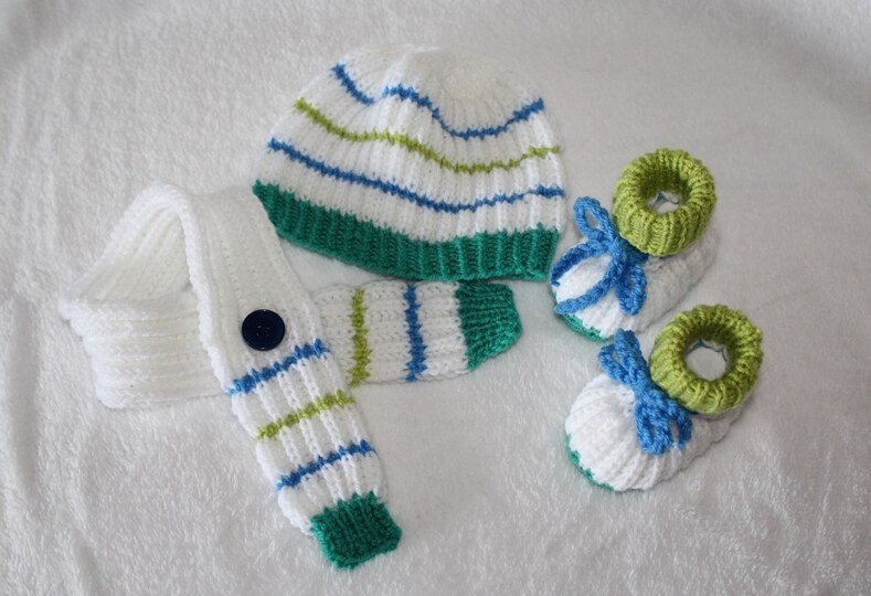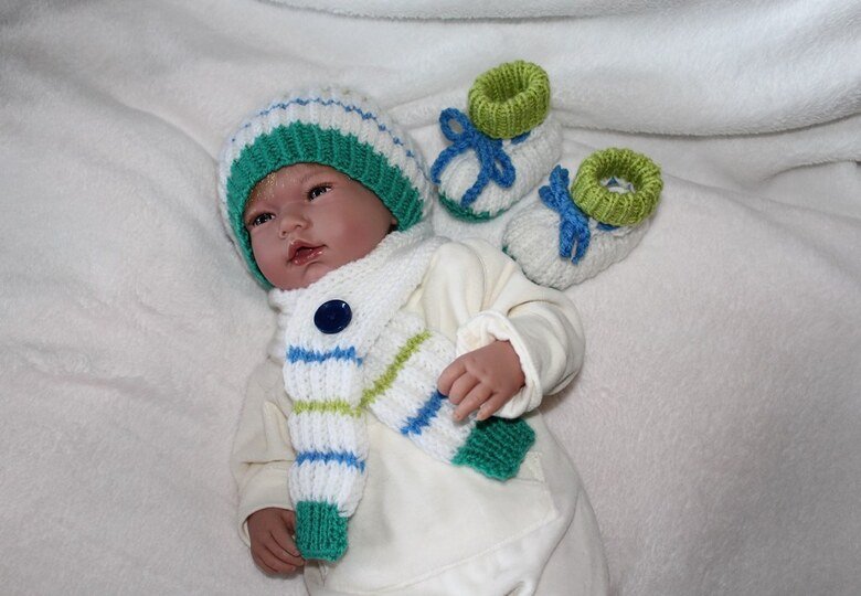 Strickanleitung Baby-Set, Mütze, Booties, Schal, ca. 2 - 7 Monate