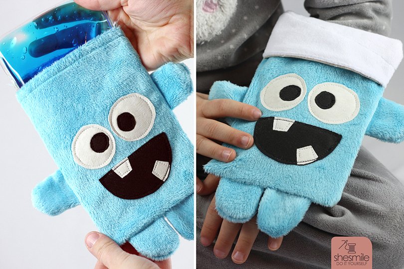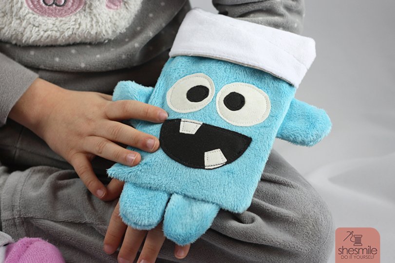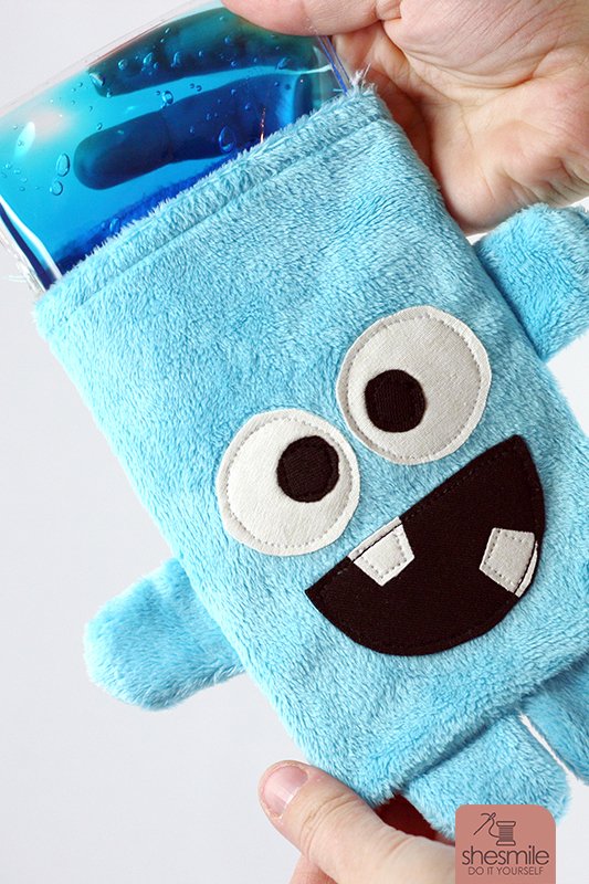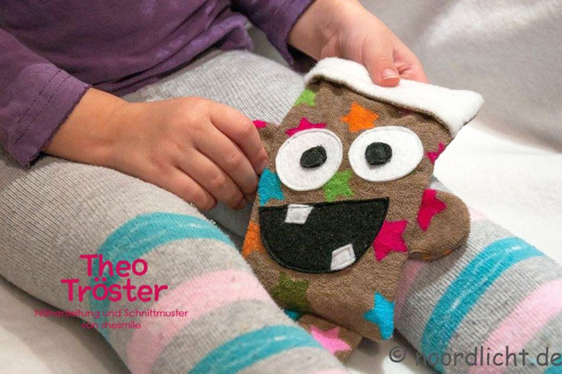 Von mir gezeichnet, entworfen und umgesetzte Nähanleitung und Schnittmuster für einen fröhlichen Kühl- und Wärmekissenbezug "Theo Tröster".