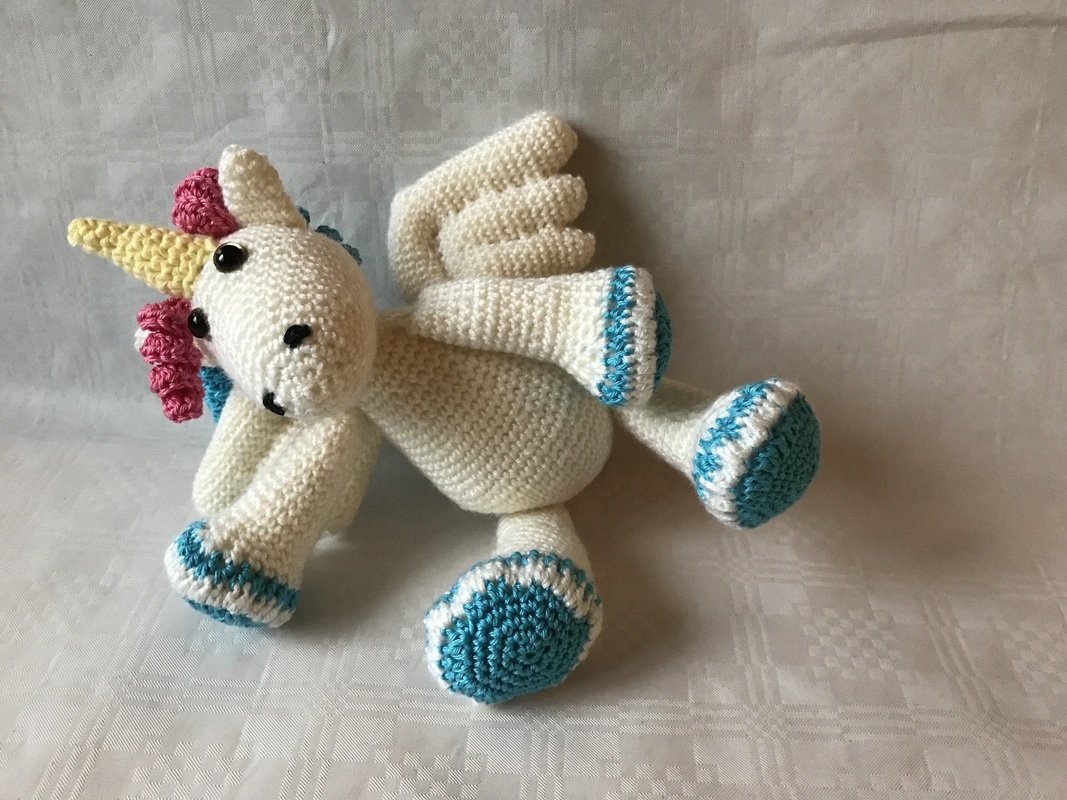 Warum ncht mal ein Einhorn mit Flügeln? In der Märchenwelt von Bunte_Fussel ist alles möglich! Wer die Flügel nicht mag, kann sie auch einfach weglassen. Ella sieht dann trotzdem umwerfend aus!