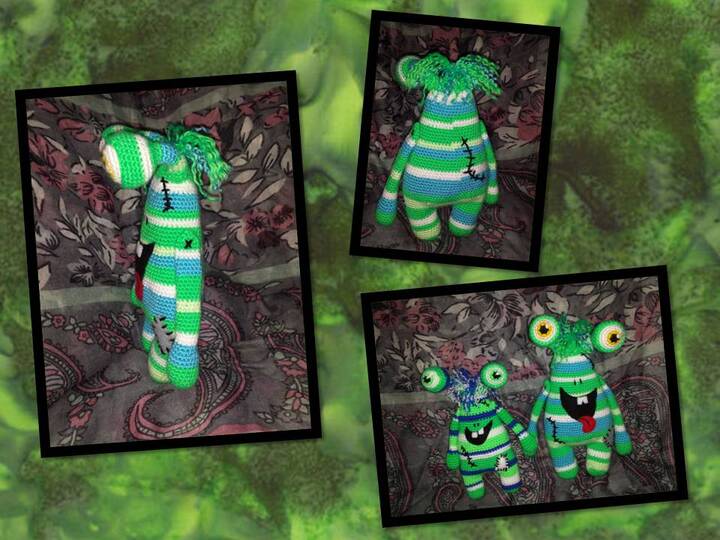 Dieser großen süße Alien Namens "Skon“ wird aus verschiedenen Wollfarben