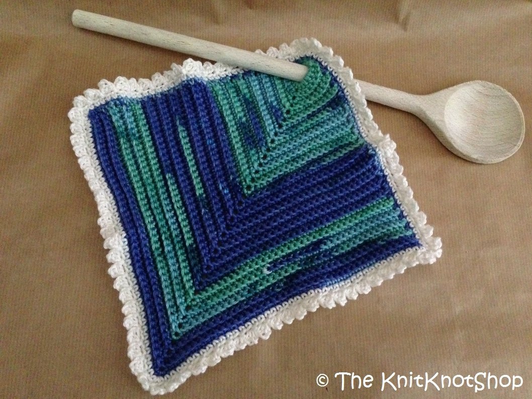 Der Topflappen wird etwa 24 cm im Durchmesser.