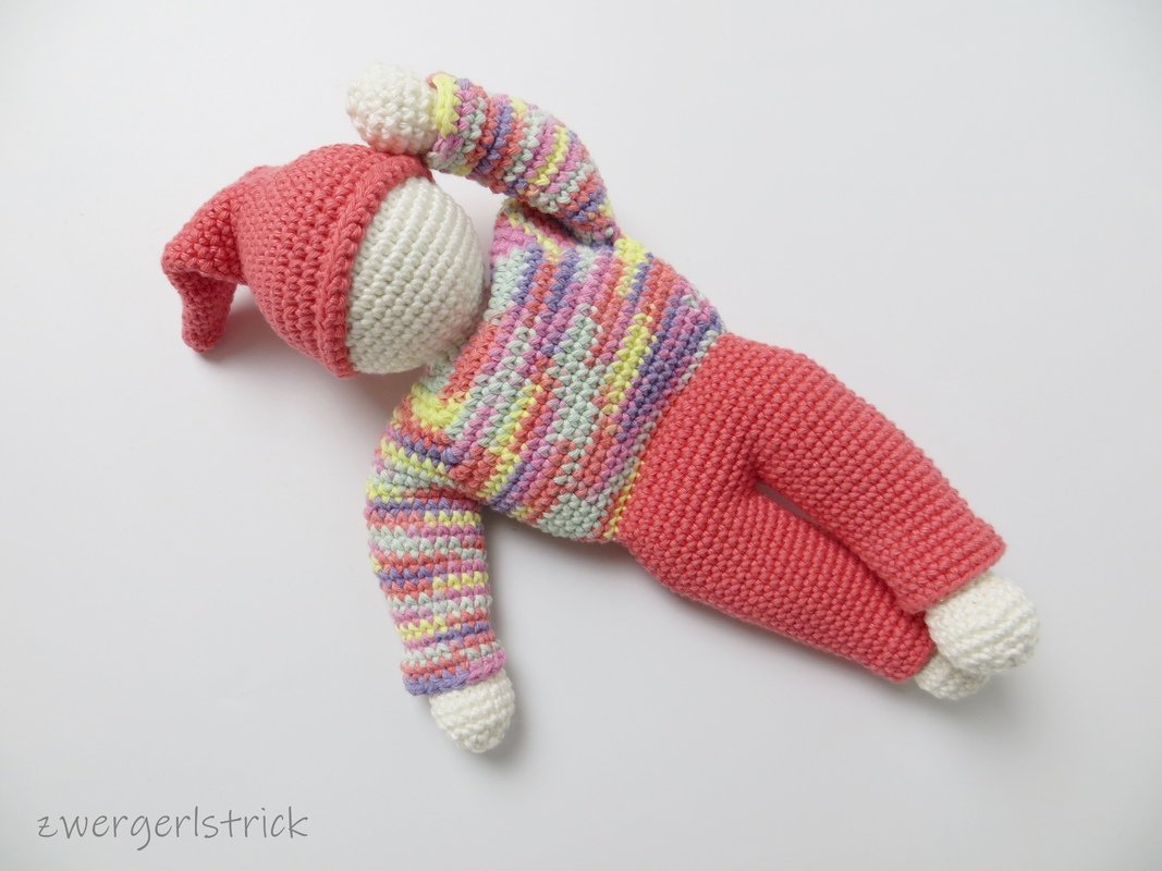 Gehäkelt wird das Püppchen in einem Stück, nur die Mütze muss noch angenäht werden.