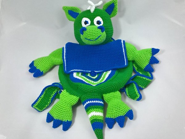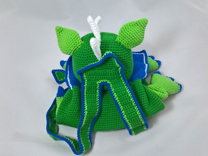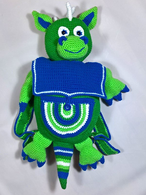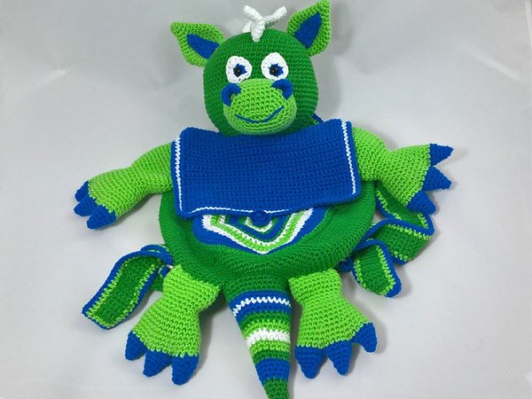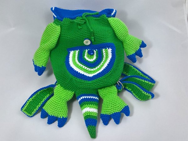 ja wenn so ein kleiner Dino unterwegs ist, braucht er einiges mit :-) Und damit das selber tragen auch Spaß macht hat dieser Rucksack einen lustigen Kopf bekommen.
