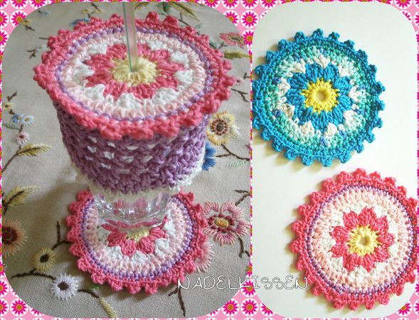 Blütengranny, Blütenuntersetzer und Getränkeschutz mit Strohhalmöffnung-Häkelanleitung