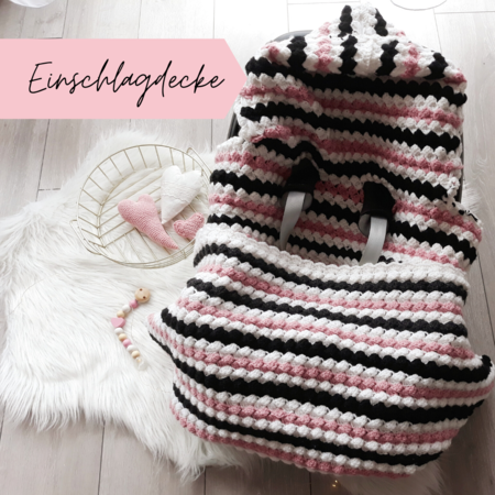 Passend zur Einschlagdecke kannst du dir weitere Accessoieres für ein Baby häkeln: Schau mal bei Babs und Babsi sowie dem Storch vorbei.