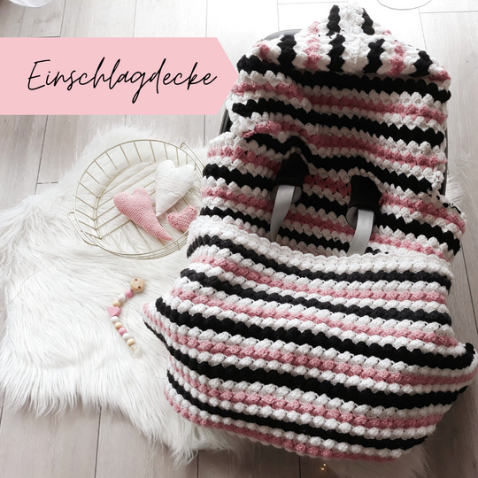 Praktisch, gemütlich und wunderschön – diese Einschlagdecke hält Babys warm und geborgen. Die Anleitung ist auch für Häkelanfänger machbar und ein ideales Geschenk zur Geburt.