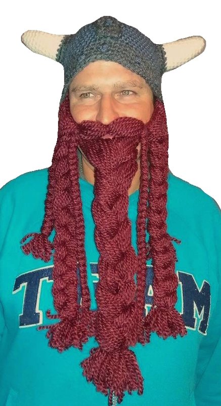 ..... du wolltest schon immer ein echter Wikinger sei? Das geht mit diesem Set... fürs Rollenspiel, für Fasching oder einfach so.. häkel dir einfach den Helm (jede Kopfgröße zwischen 36-62 cm ist beschrieben) und den dazu passenden, abknöpfbaren Bart (genau für Kopfumfang 59-60 cm beschrieben, aber auf jede andere Größe anwendbar).