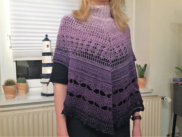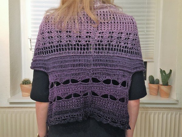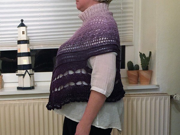 Der Schlauchschal bzw. der Schulterwärmer ist für die vollschlanken Damen unter uns bestens geeignet. Er ist schön kuschlig warm und verdeckt auch noch ein wenig das Bäuchlein ;-). Durch die Armlöcher ist mehr Bewegungsfreiheit gegeben und man kann ihn auch wunderbar z. B. im Büro tragen. Aber auch für die schlanken Damen unter uns passt er einfach bestens als leichtes Oversizemodell. Die Anleitung ist für Konfektionsgröße 38 bis 48/50 geschrieben.