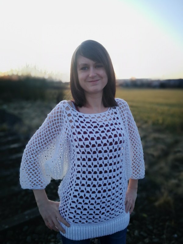 Mit Hilfe dieser Häkelanleitung kannst du dieses Lochmuster Shirt in jeder Größe häkeln. Verwendest du dünneres Garn, lässt sich das Shirt sogar auch für Kinder nachhäkeln.
