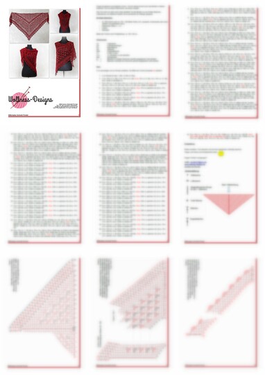 Die Anleitung umfasst 10 Seiten und enthält eine maschenweise ausgeschriebene Anleitung sowie Häkelschriften (Charts) und eine Schemazeichnung.