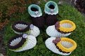 Anleitung zum häkeln der kuschlig weichen Baby- Boots, die mit romantischen Rüschchen verziert und in 3 harmonischen Farben gehäkelt die Herzen von Babys und Mamas erobern werden.