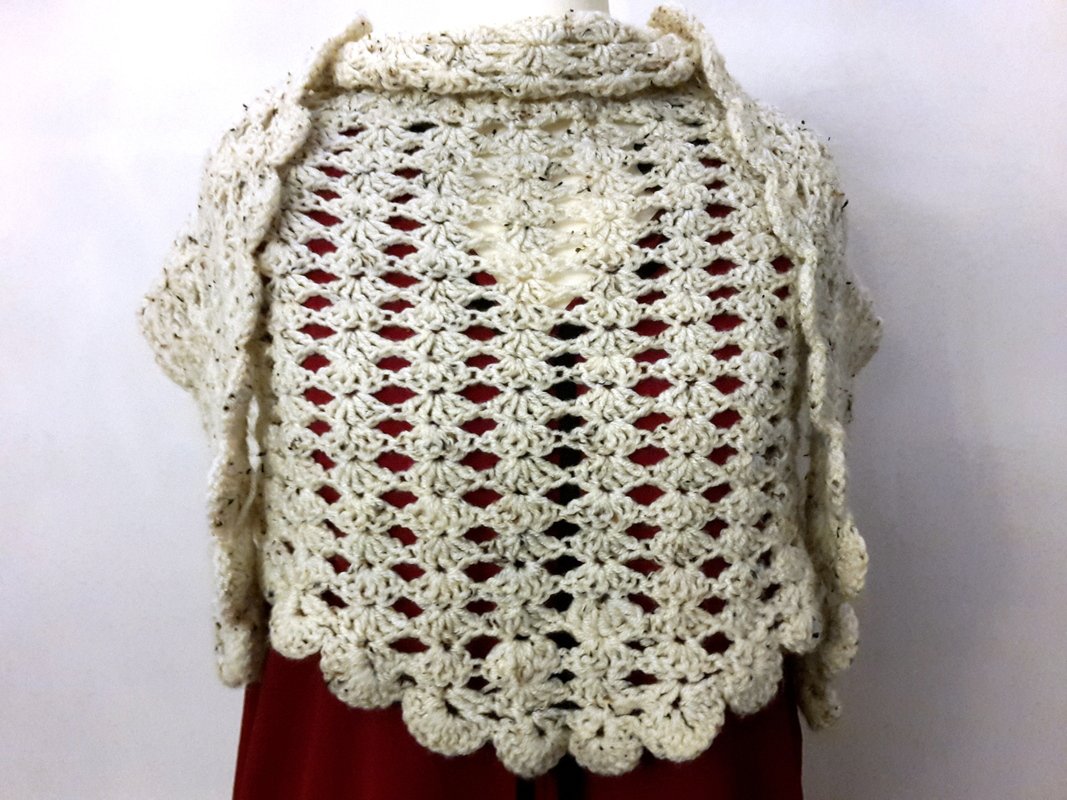 Ich habe für das Tuch etwa 1000 m 4-fach gefachtes Garn mit einer Nadelstärke 3,5 gehäkelt.