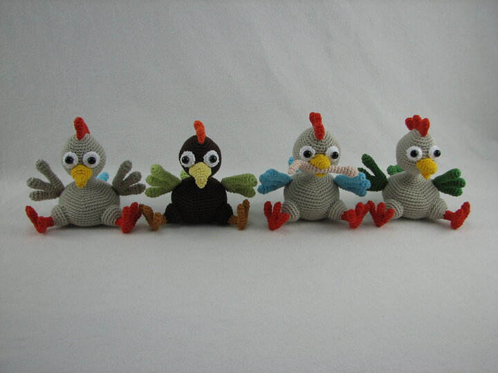Großes Set: Familie Hahn - "Küken Fridolin", "Henne Frieda" und "Hahn Frederik"