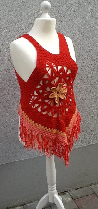 Die Tunika „Summertime“ ist ein luftiges Kleidungsstück. Du kannst es über Kleider, Blusen, Shorts und Hosen tragen. Man kann die Tunika in den Größen anpassen....Diese auf dem Foto haben Größe 42-46...Du kannst sie aber auch kleiner und noch größer arbeiten.