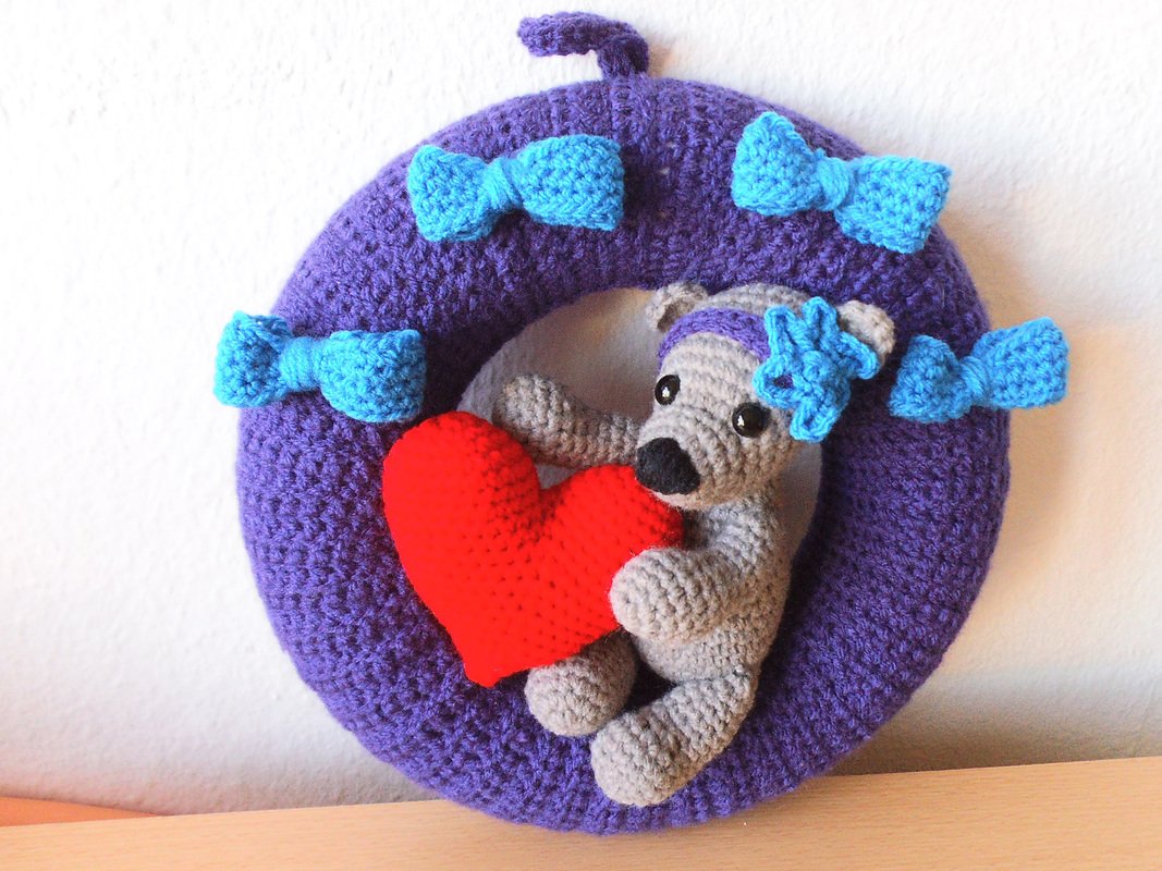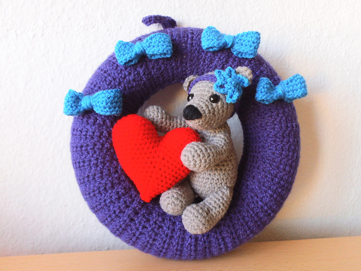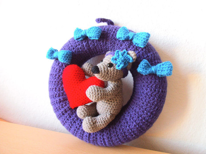 Der Türkranz hat einen Durchmesser von 25cm, der Teddy selbst ca. 18cm (wenn er steht).