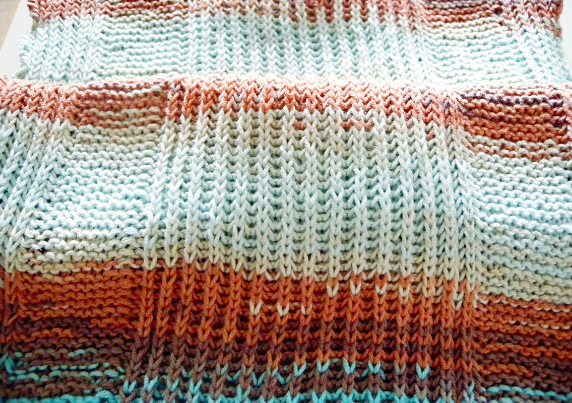 "Alize Wrap" - eine Strickanleitung für eine weiche und hautschmeichelnde Stola, die in Baumwollmischgarn gestrickt wird. Der größte Teil besteht aus einem Patentmuster (in einem Foto-Tutorial erklärt), das durch Abschnitte in kraus rechts aufgelockert wird.