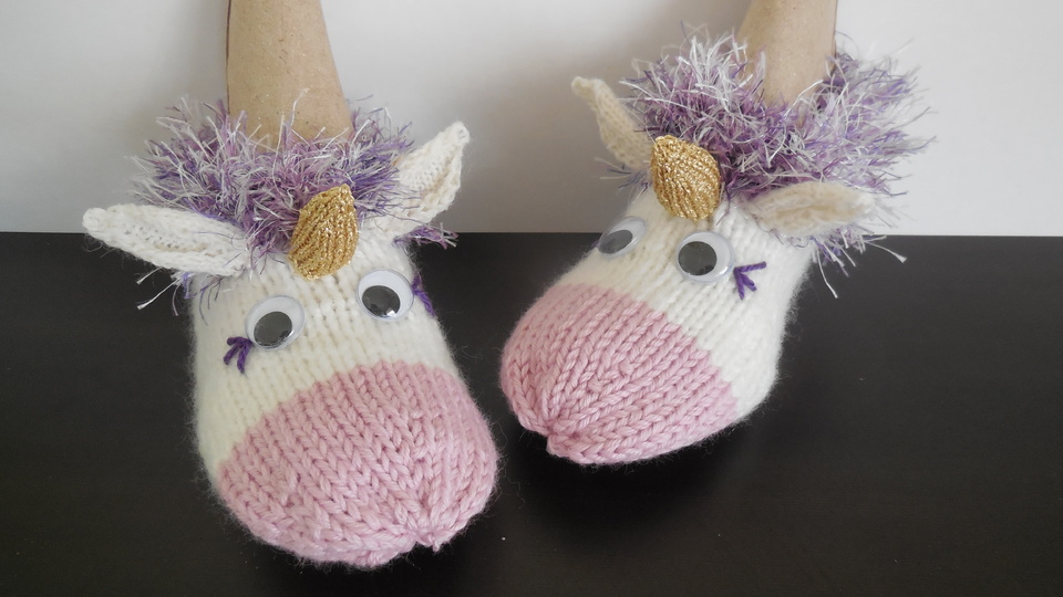 Diese süßen Einhornschuhe sind sehr schnell und einfach zu stricken wenn man das Stricken mit einem Nadelspiel beherrscht.