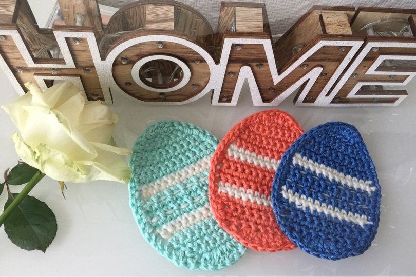 Hier habe ich für Euch eine Anleitung, um diese schönen bunten Ostereier zu häkeln.