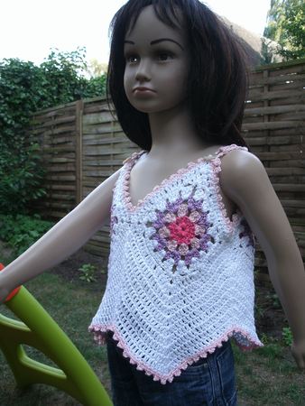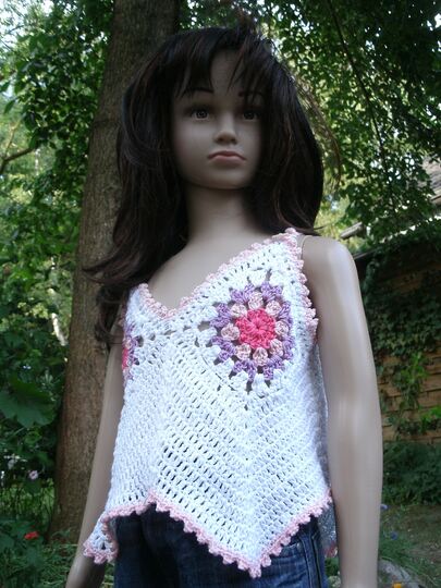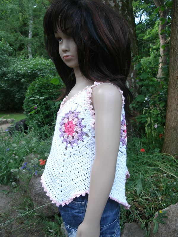 Kleine Mädchen werden dieses Top lieben, und wenn Mutti etwas mehr Wolle hat, kann sie es beliebig zur Tunika oder sogar zum kurzen Kleid verlängern.