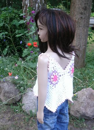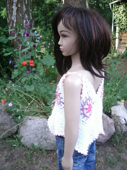 Auch wird erklärt, wie das Top etwas größer gearbeitet werden kann, damit es auch für größere Größen gehäkelt werden kann.
