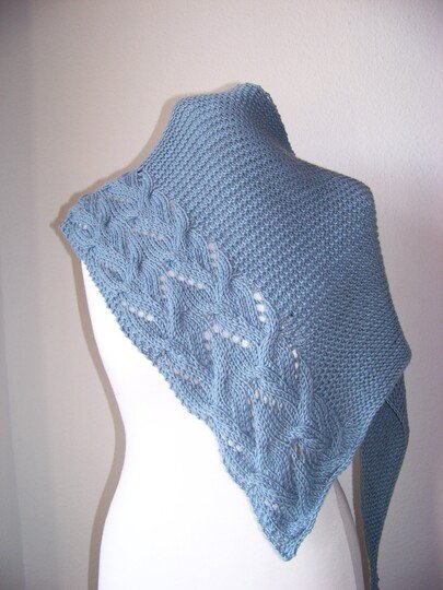 Maschenprobe: 14 Maschen und 25 Reihen auf 10 cm in kraus rechts mit Nadelstärke Nr. 6 mm, nach dem Waschen. Die Maschenprobe bei diesem Projekt ist nicht so wichtig. Eine andere Maschenprobe führt allerdings zu einem größeren oder kleineren Tuch und zu einem niedrigeren oder höherem Garnverbrauch.