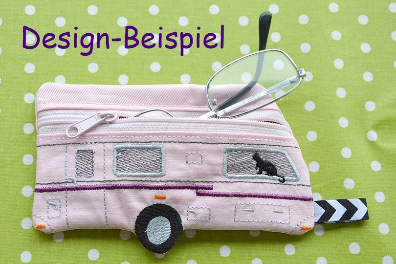 Nach dem Urlaub ist vor dem Urlaub und somit ist das ganze Jahr Urlaubszeit. Jetzt können Sie Ihren nächsten Campingurlaub mit Wohnwagen stilvoll begehen. Die Wohnwagen-Täschlein sind ideal für Schlüssel, Kosmetika, Notnähzeug oder Krimskrams der irgendwo im Wohnwagen liegen würde und somit unauffindbar wäre. Die Taschen haben alle saubere und schön verarbeitete Innennähte. Wer sich lieber Tasche, Shirt oder ähnliches verzieren möchte, kann die beigelegten Applikations-Dateien dazu verwenden. Wetten dass jeder Camping-Nachbar Sie um die Taschen oder Accessoires beneidet?