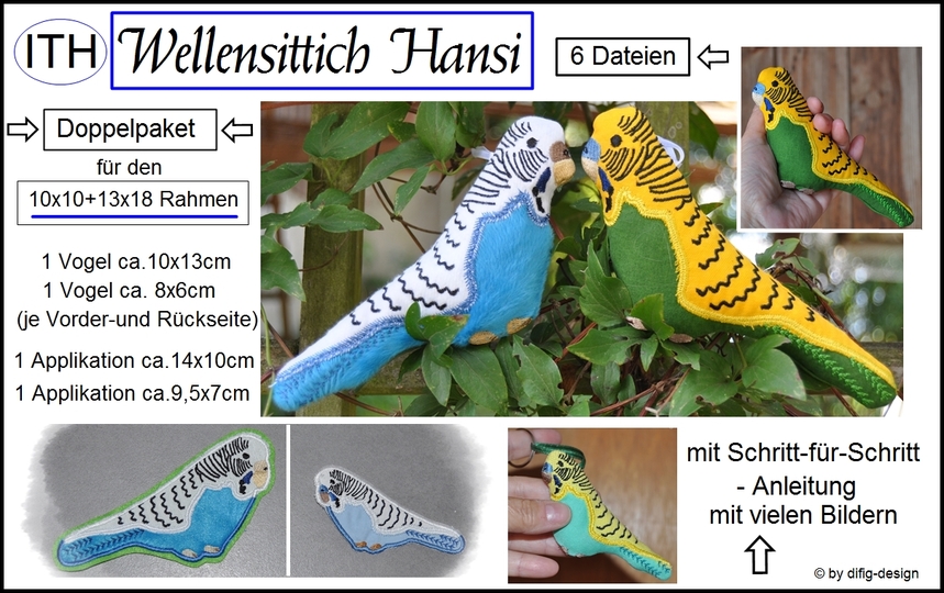 ACHTUNG: Hier handelt es sich um Stickdateien die man in der eigenen Stickmaschine sticken muss. Bei einigen ITH Dateien muss man am Schluss eine Wendenaht schliessen oder eine kleine Naht mit der Nähmaschine nähen. Bei Unklarheiten bitte anfragen.