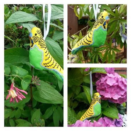 Eine Vorder-und Rückseite für einen lebensgrossen Wellensittich.
