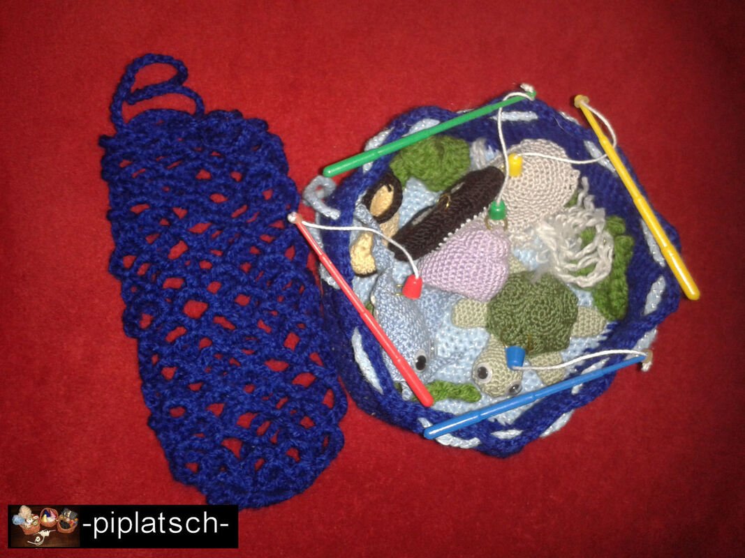 Diesmal werden die Anglersachen in einem Fischernetz transportiert, der "See" ist beim Angelspiel- Starterset enthalten.