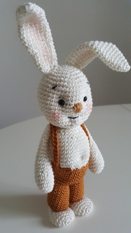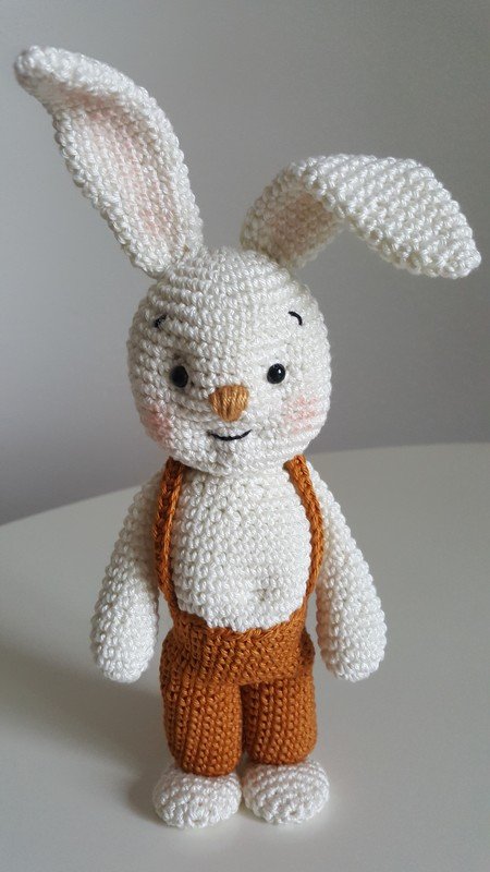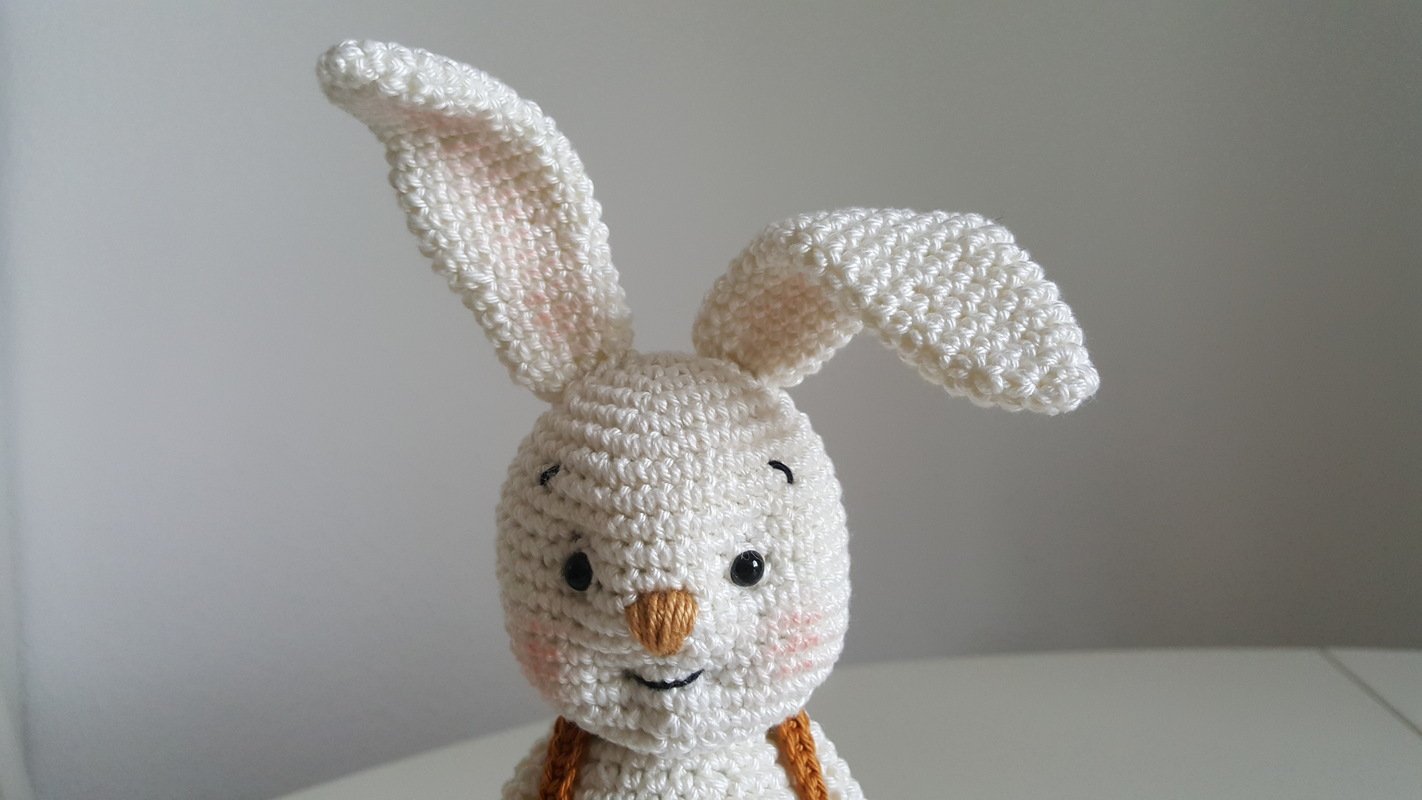 Dieses PDF beinhaltet eine 7-seitige Schritt-für-Schritt-Anleitung zum Häkeln eines Hasen inkl. 21 Bildern.