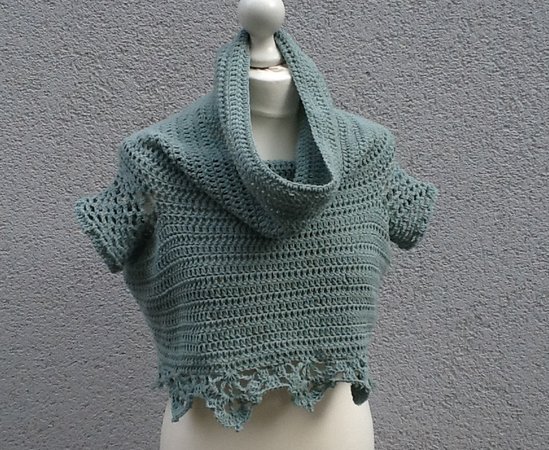 Dieser kurze SommerPulli „RollkragenWunder“ sieht sehr schick aus. Man trägt ihn im Lagenlook über einem Kleid oder anderen Shirts, auch eine dünne Bluse sieht super aus...oder einfach so... ohne was drunter....