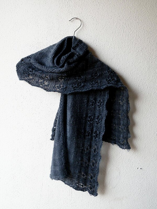 Die Stola wird von unten nach oben der Länge nach gestrickt. Sie wird im Rippenmuster gearbeitet und hat am Anfang einen schmalen Lochmusterrand. Die Größe ist variabel. Man kann das Muster verwenden, um einen schmalen Schal zu stricken, genauso kann man aber auch eine wesentlich breitere Stola anfertigen. Den Abschluss bildet eine Lochreihe, die es ermöglicht, ein Band durchzuziehen und das Stück als Umhang zu tragen.