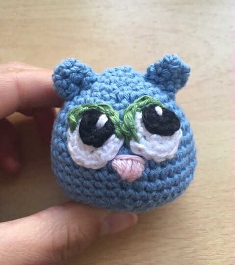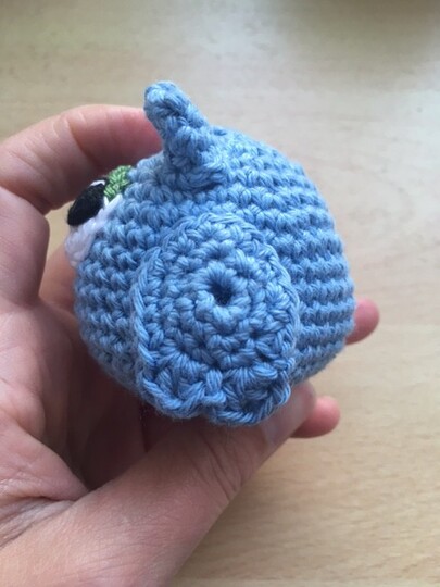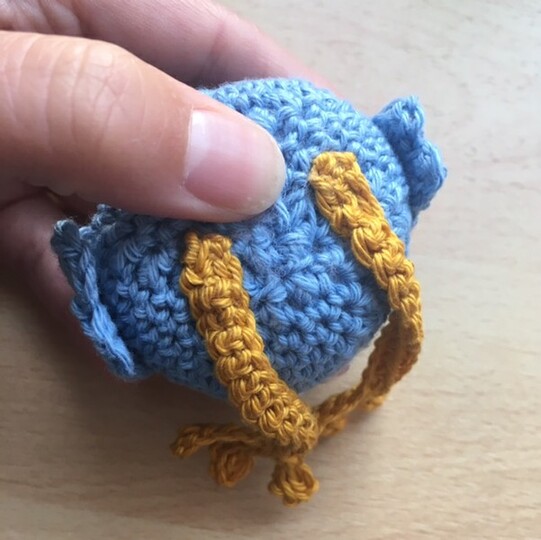 •Baumwollgarn für die Nadelstärke 3,0 mm (z.B. Schachenmayr oder Catania) ~ Blau (für Körper) ca. 20g ~ orange (für Beine) ca. 10 g ~ Weiß, Schwarz, Grün, Rosa (für Augen, Nase und Mund) es reicht je ein kleiner Rest