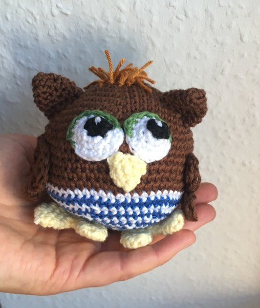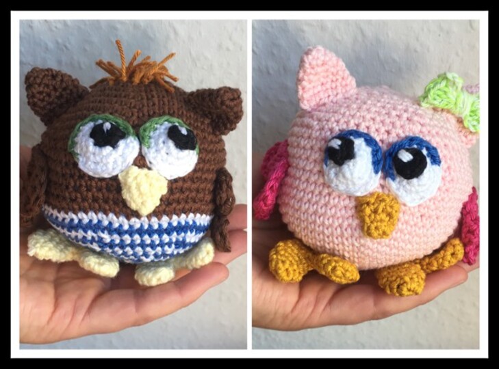 Mit dieser Anleitung kannst du Egon und Enni Eule häkeln. Die fertige Figur ist am Ende ca. 14 cm groß, je nachdem wie fest oder locker du häkelst, kann das auch etwas variieren. Die Anleitung ist auch für Anfänger geeignet, allerdings solltest du einige Grundlagen wie Luftmasche, Zunahme, Abnahme, feste Masche und Kettmaschen beherschen. Material das du benötigst: