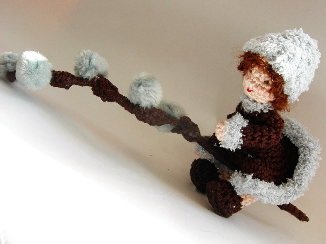 Das Palmkätzchen ist einer der ersten Frühlingsboten. Diese Blumenkind bringt dir den Frühling nach Hause. Es wird aus festen Maschen gehäkelt und hat biegsame Arme und Beine. Eine wunderschöne Frühlingsdekoration!