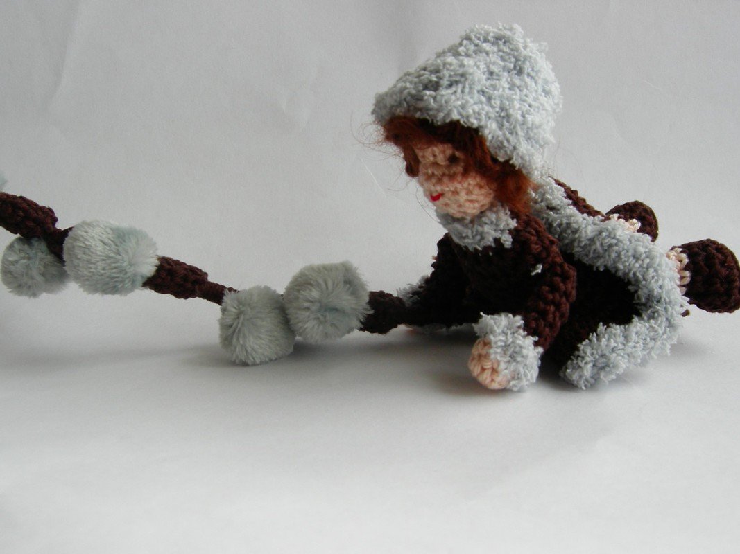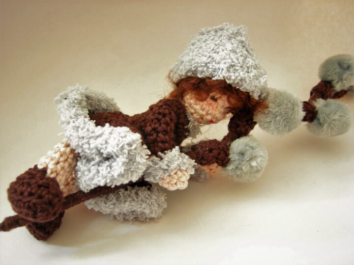 Das Püppchen ist etwa 15 cm und der Zweig etwa 21 cm groß.