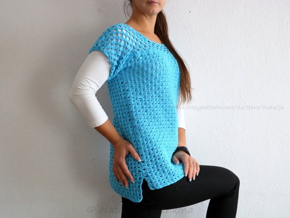 Hinweis: Beim vorgestellten Produkt handelt es sich NICHT um fertig gehäkelte Jacke/Tunika, sondern lediglich um eine Schritt-für-Schritt-Häkel-Anleitung, die Dir dabei hilft, selbst Jecke/Tunika zu häkeln.