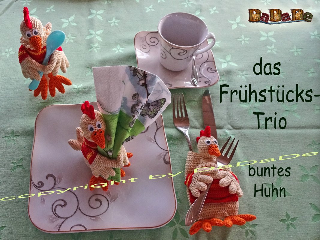 das Huhn ist ein witziger Eierwärmer, da wird jedes Osterfrühstück zu einem