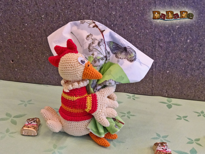 Das Huhn wir mit Nadelstärke 2; ungefähr 12cm hoch,