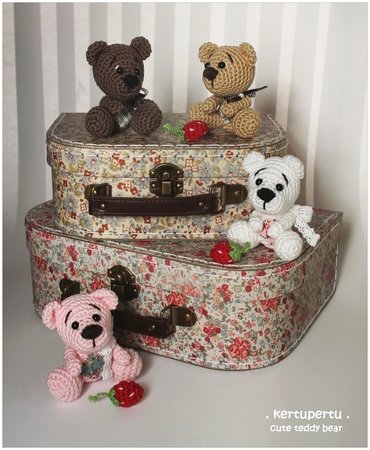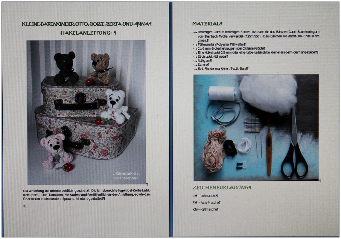 Die Bärenkinder Otto, Bosse, Berta und Anna sind grosse Freunde. Sie spielen lustig miteinander in den Wäldern, klettern auf Bäume. Ausser Honig lieben sie noch Erdbeeren (Anleitung ist auch dabei)! Die Bärchen sind so klein und süß - man kann sie überall hin mitnehmen :)